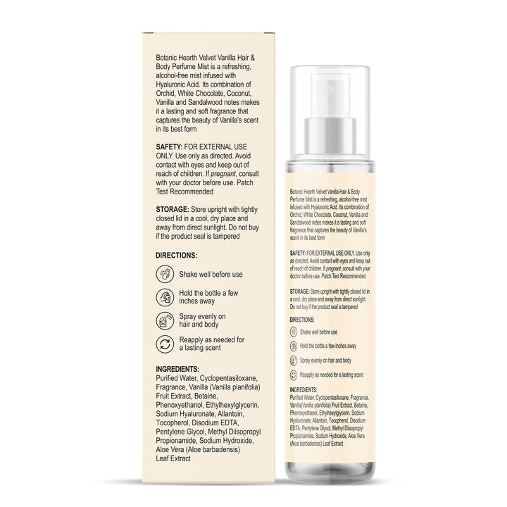 - Everyday luxury in a bottle - this hair and body mist is perfect for work, dates, or casual outings. Use it as a vanilla spray for hair or a body spray for women, and enjoy the comforting sweetness of vanilla wherever you go.